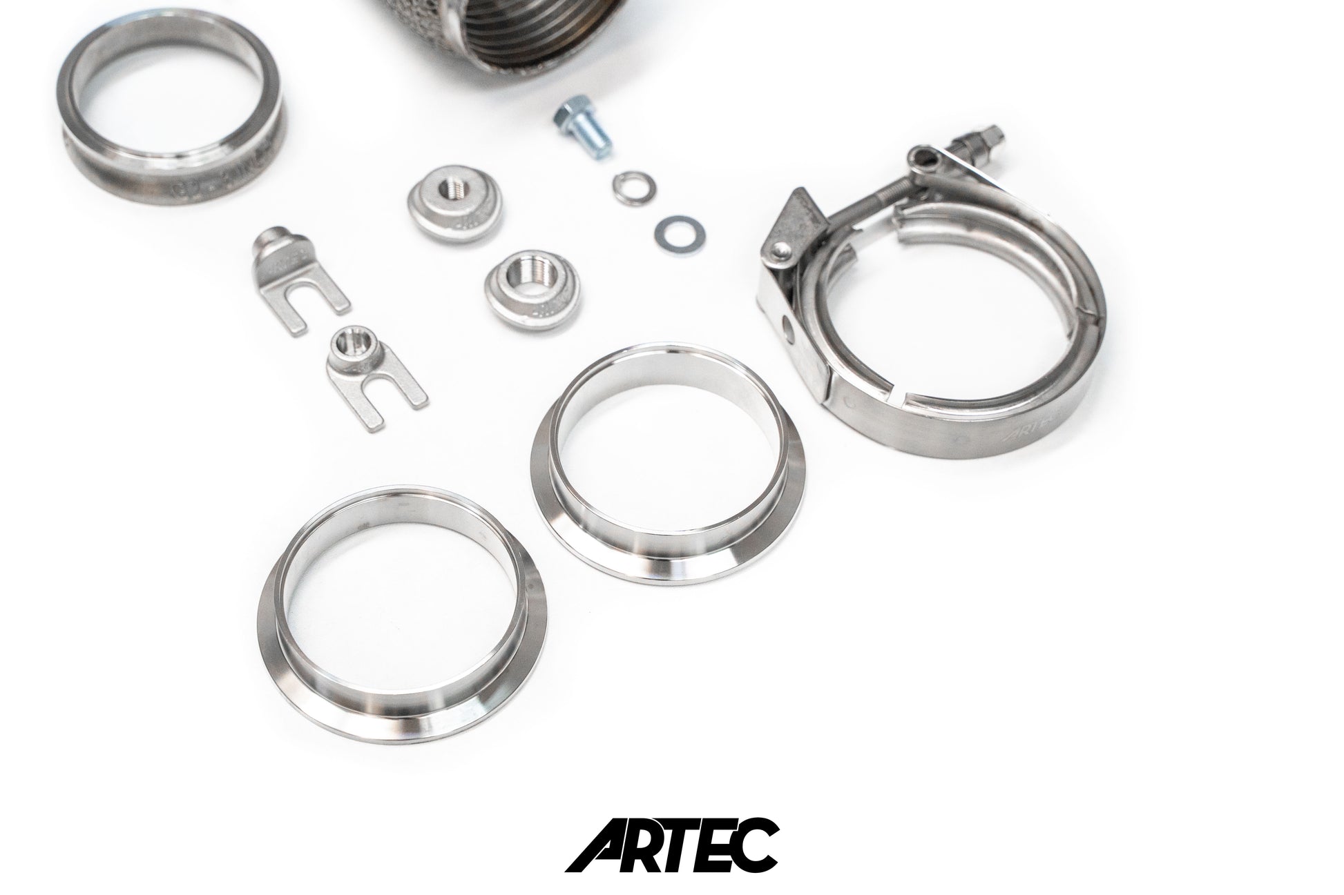 - The final piece of the puzzle is the ARTEC Cast 89-80mm flange. This flange allows you to easily transition from 3.5" pipe back to a standard 3" 2-bolt flange. It allows for bolt-on compatibility with existing aftermarket 2-bolt exhaust systems without sacrificing flow.