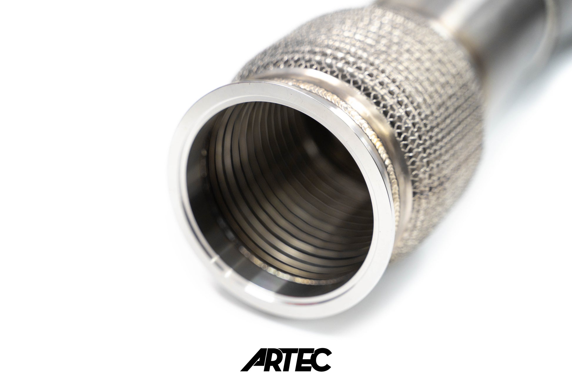 Utilizes the ARTEC cast 89-80mm 2 bolt flange for bolt on compatibility with existing cat-back exhaust systems